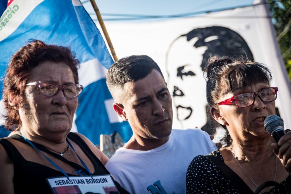 Miriam Medina es parte de la organización “Madres en lucha”. Lleva en su pecho una imagen de su hijo, Sebastian Bordón, también asesinado por la policía. Sube al escenario que se instaló frente a la capilla junto a familiares de las víctimas y dice: “Doce años de injusticia, doce años de que la justicia mire para otro lado”. Cuenta que trabajó del otro lado, en Suárez y en Lanzone, fue docente de la escuela 13, 80 y 28 y sabe lo que significa la pobreza, el hambre y la miseria en los pibes.