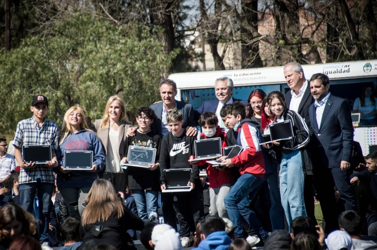 El presidente Alberto Fernández visitó esta mañana el partido de San Martín, donde entregó mil netbooks en el marco del Plan Conectar Igualdad. Acompañado por el Ministro de Educación, Jaime Perczyk; su par de Obras Públicas, Gabriel Katopodis, y el Intendente Fernando Moreira, el mandatario llamó a ponerle freno a la “violencia” y a tolerar la “diversidad”.