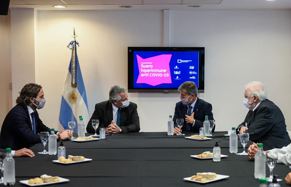 El mandatario expresó su orgullo por los desarrollos alcanzados por los científicos argentinos, al mismo tiempo que ponderó la importancia del actual proyecto que arrojó resultados positivos en la baja de la mortalidad (45 %), el descenso en los días requeridos de terapia intensiva (24 %), y la menor necesidad en el uso de respiradores (36%).