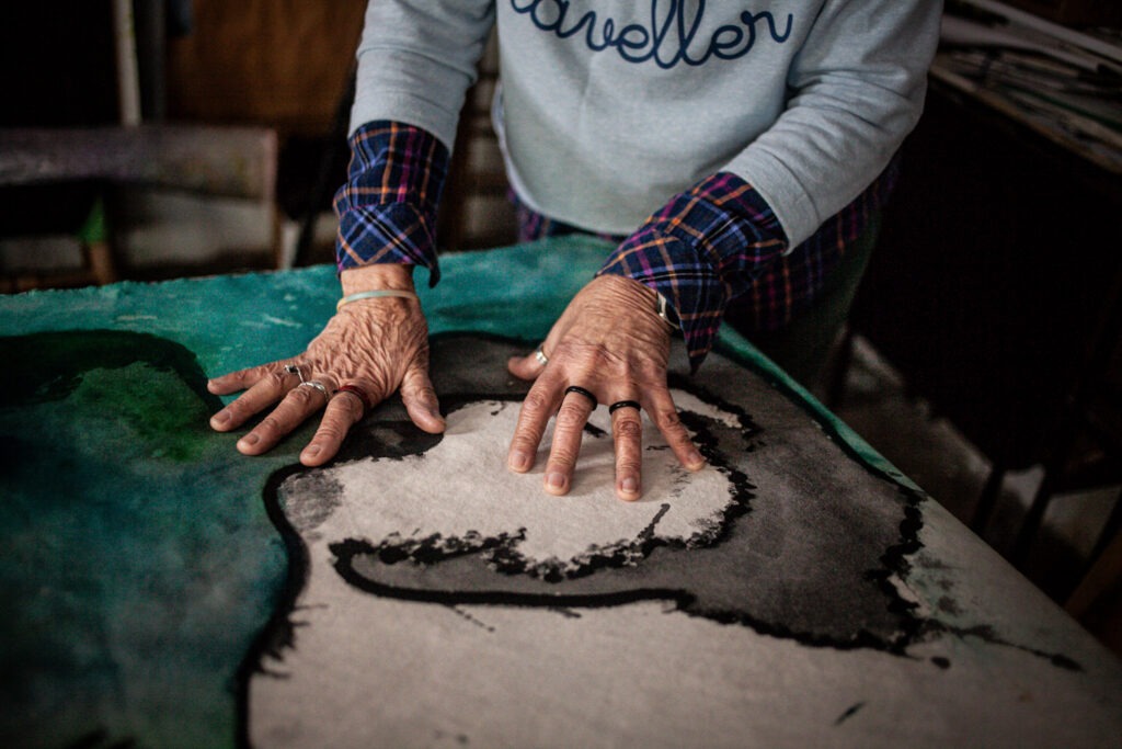 La artista, que hace poco fue reconocida por el Concejo Deliberante por su trayectoria y su trabajo, recibió a Zorzal Diario en su casa de Villa Lynch. Para llegar a su atelier hay que atravesar toda la vivienda, que incluye la antigua casa de su madre, que parece un museo, con toda su obra exhibida en las paredes y hasta en las cortinas. Toda la casa respira su arte: desde grabados de los años ’60 hasta electrografías de la crisis del 2001: “El arte no es para elegidos, sino que es parte de un trabajo”.