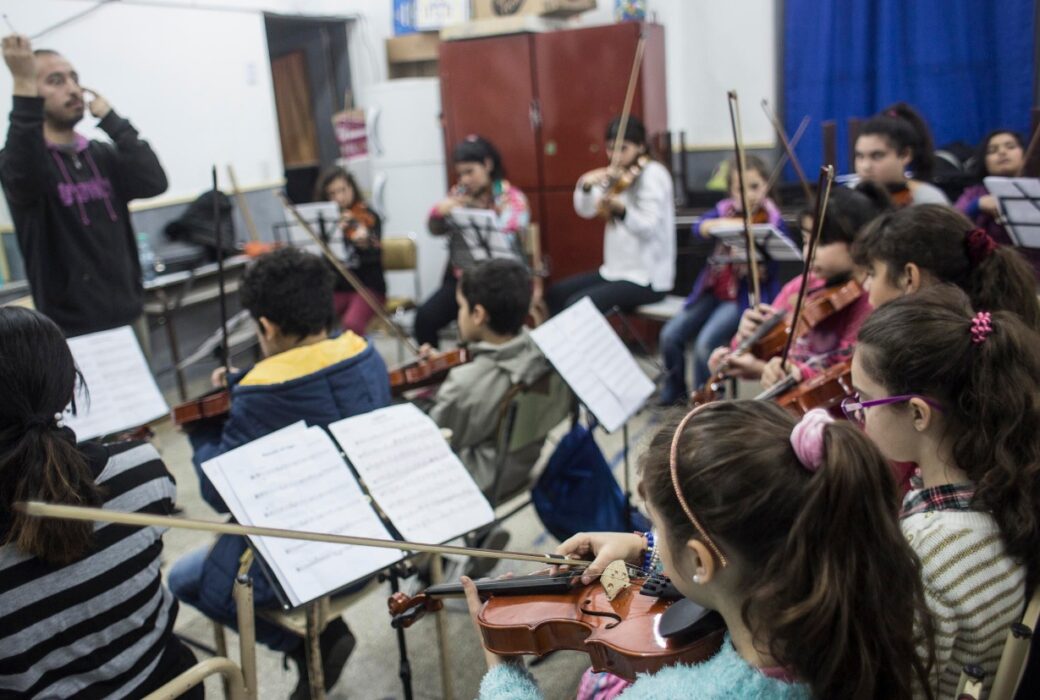 La orquesta sinfónica infantojuvenil “Almafuerte” forma parte de las Orquestas del Bicentenario, funciona desde hace 4 años en la Escuela N°44 de Villa Ballester. El próximo sábado celebrarán su aniversario con festival y concierto en plena calle.