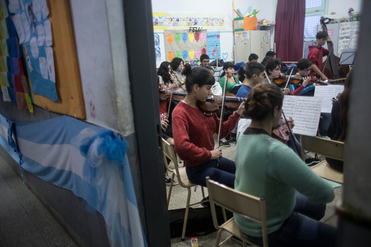 “Yo llegué a la orquesta por una ex profesora que me contó de los programas, me dijo lo útiles que eran porque recibía clases de lenguaje, instrumento y luego participaba de la orquesta. No solo es solo maravilloso por el ambiente hermoso en el que estamos, sino porque es totalmente gratuito y porque puede acceder cualquiera tenga o no los instrumentos”, afirma Agustina Blanco (17), violinista de la orquesta.
