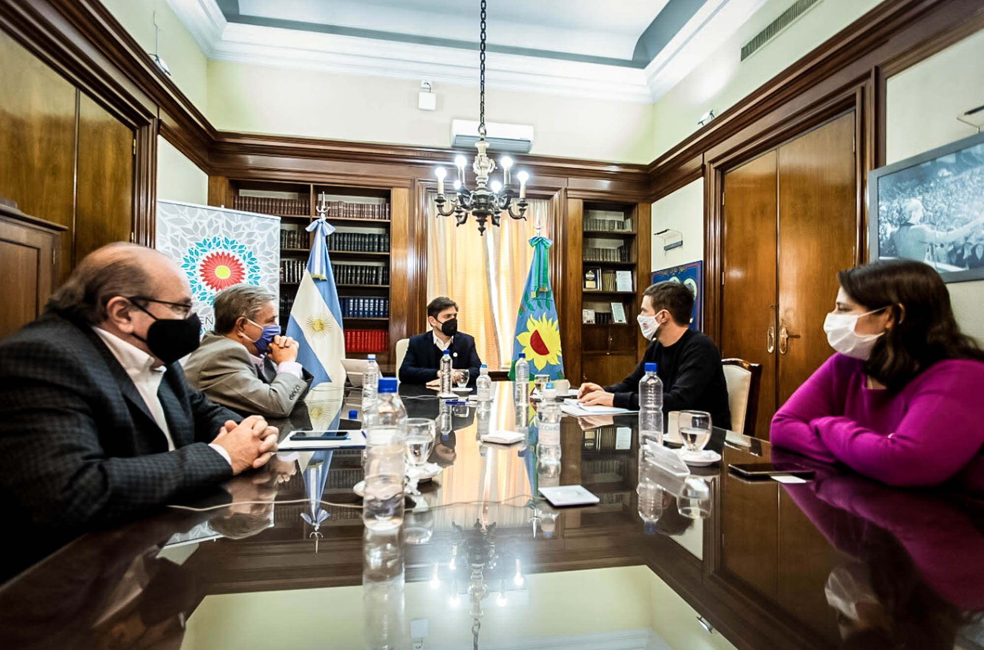 El ex intendente de San Martín Carlos “Tato” Brown mantuvo una reunión junto al gobernador Axel Kicillof y el ministro de Producción Augusto Costa. También participó el ex presidente Eduardo Duhalde, previo a las desafortunadas declaraciones que hizo respecto al futuro democrático de la Argentina. Se firmó un acuerdo entre el gobierno de la provincia y el Movimiento Productivo Argentino (MPA) que preside Brown.