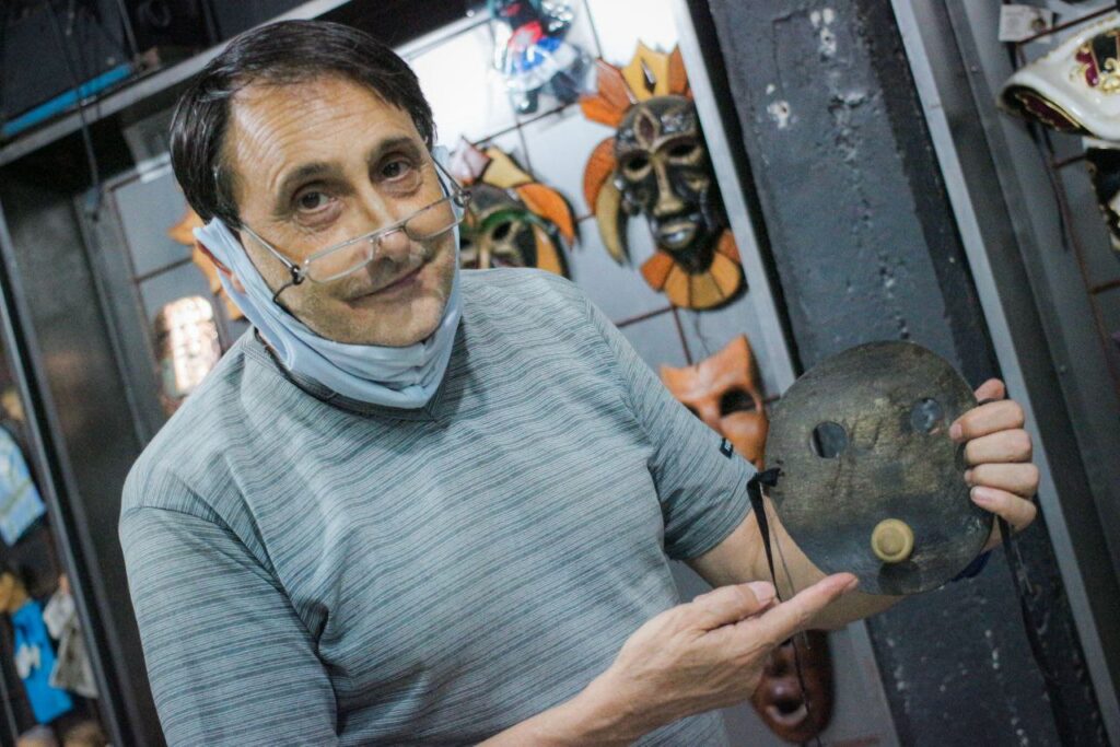 Carlos Canavese (66 años) abrió el garaje de su casa en Villa Maipú para mostrar su colección de máscaras con más de 400 piezas de todo el mundo y con diferentes historias. Allí también, desde hace 22 años, tiene montado el centro cultural Teatralizarte, donde se sostiene una de las cuatro salas de teatro independiente de San Martín. En el espacio, cuando la peste del coronavirus no había llegado, se dictaban talleres y se realizaban obras de teatro para la comunidad. Canavese fue distinguido como embajador de la paz por la organización civil “Mil Milenios de Paz”. La mención tiene que ver con su trabajo vinculado al teatro con personas con discapacidad. En 2013, fue reconocido por el Vaticano por generar “puentes de comunicación” con jóvenes con distintas capacidades.