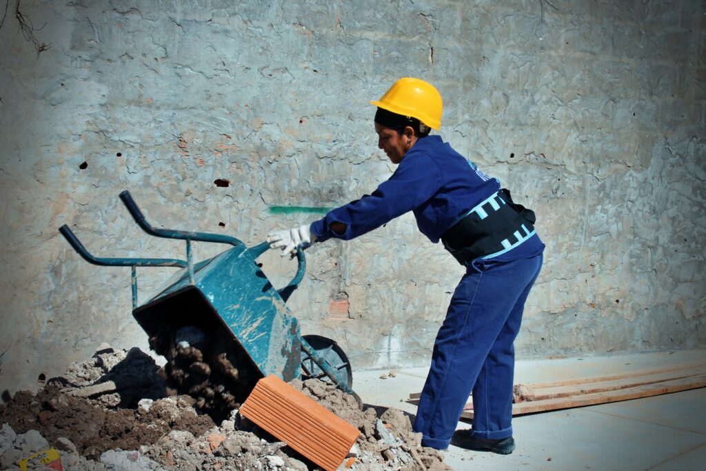 Zulma Duette terminó el secundario técnico como Maestra mayor de obras, es Coordinadora de Obras en la cooperativa de trabajo La Zaldarriaga, y tiene el gesto adusto de una mujer curtida. Llega seis y media de la mañana al galpón, ubicado en José León Suárez, al mismo tiempo que Daniel, encargado de la logística. Siete y cuarto arriban los coordinadores de cada obra con las demandas de materiales, herramientas, etcétera. Entonces, preparan los camiones que distribuyen todo lo necesario a cada punto y arrancan. Ella, se queda hasta las nueve y media en la oficina, realizando pedidos a corralones, controlando el stock, y demás. Después, comienza el recorrido de las obras hasta las cuatro de la tarde. A esa hora vuelve a la oficina donde realiza una reunión con todos y cada uno de los coordinadores para tratar temas específicos o solucionar problemas, más o menos, hasta las dieciocho horas. La oficina de Zulma está ubicada en el entrepiso del galpón. Es una oficina sencilla, con un escritorio, una computadora, dos sillas, un ventanal hacia dentro de la cooperativa y el aroma de la cocina que llega desde abajo. “Empanadas”, dice, olisqueando el aire.