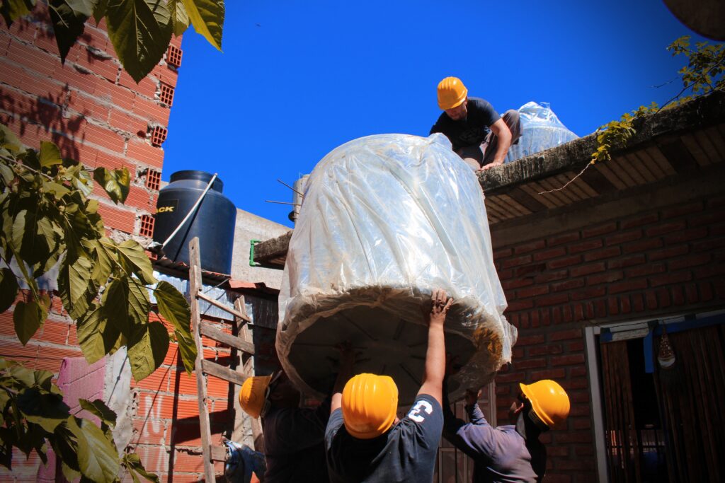 Esa fue la primera experiencia de trabajo, a gran escala, de La Zaldarriaga. Allí crearon, diseñaron y patentaron el kit de la torre para tanques de agua, que más tarde utilizaría la SISU en todo el país. Se trata de una torre de tres metros con una estructura de hierro, plantada un metro y medio bajo tierra, para sostener el tanque. “Las casas en los barrios populares suelen ser muy precarias y estar hacinadas, conviven dos, tres familias, por lo que colocar un tanque de 500 litros en el techo puede ser sumamente peligroso”, explica Zulma. Con Naciones Unidas realizaron 3.000 instalaciones para que el agua llegue a los hogares.