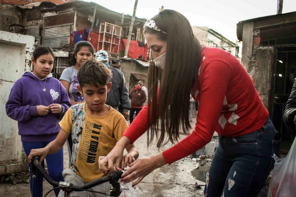 La pregunta que se le presentó fue: ¿cómo hacer para que la comunidad siga teniendo un plato de comida en la mesa? «A partir de ese momento empecé a recolectar donaciones de alimentos. Armaba las bolsas en mi casa y cada sábado iba al barrio con mi auto a entregar la mercadería. Cuando llegaba, a las seis de la tarde, ya estaba armada la fila y les iba entregando una bolsa por persona», detalló.