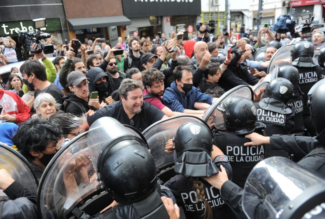 Hubo dos estudiantes detenidos y Juan Mascaró, el presidente de la asociación de documentalistas DOCA y unos de los articuladores de la resistencia, que fue retenido en la vía pública, a unas diez cuadras del lugar, en Carlos Calvo y Avenida 9 de julio.