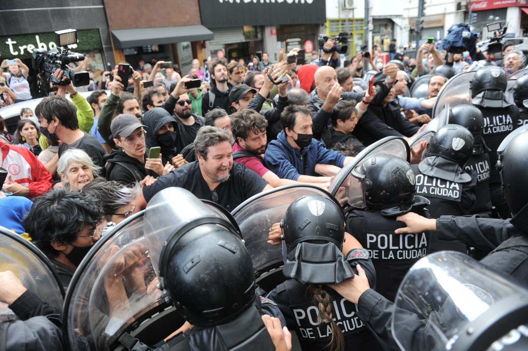 Hubo dos estudiantes detenidos y Juan Mascaró, el presidente de la asociación de documentalistas DOCA y unos de los articuladores de la resistencia, que fue retenido en la vía pública, a unas diez cuadras del lugar, en Carlos Calvo y Avenida 9 de julio.