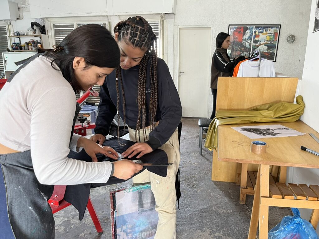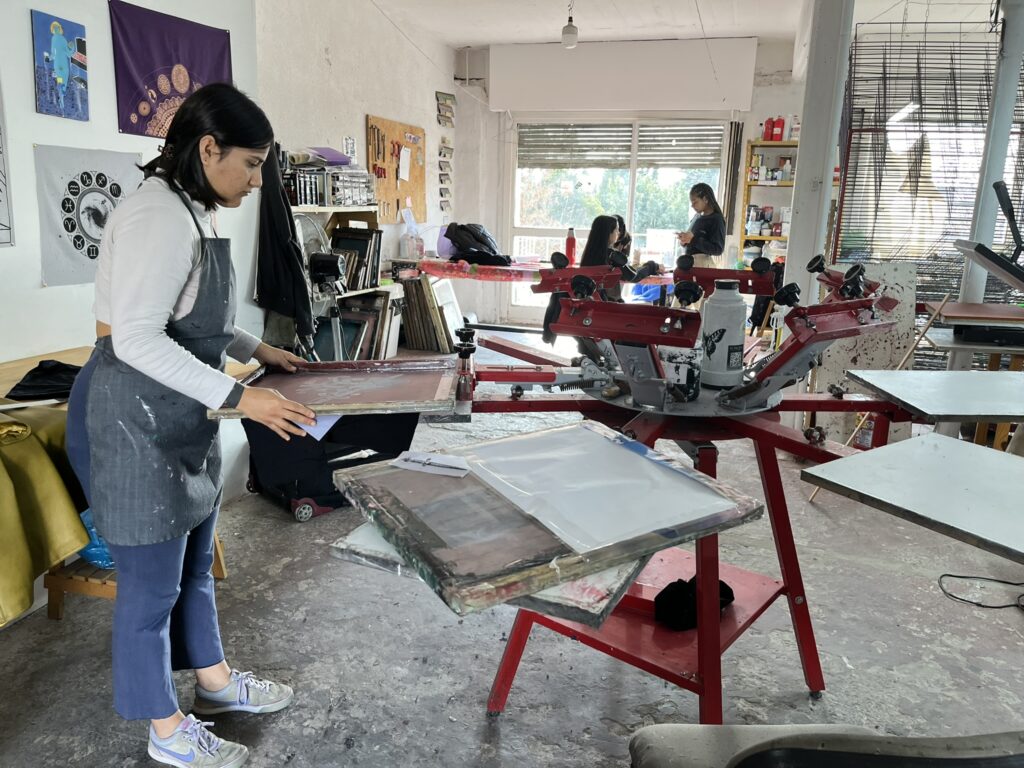 Lelu explica que la cuarentena las ayudó a repensarse. “Todo ese proceso de no habitar el espacio por unos meses también sirvió, no es que nos quedamos en nuestras casas sin pensar nada. De hecho una de las chicas se llevó una valija con productos, los vendía, y otras nos organizamos para pensar los proyectos, qué herramientas necesitabamos, cómo crecer para poder generar guita y, efectivamente, el camino era el servicio de serigrafía, o sea que la gente venga a pedirnos los estampados”. Antes, solo producían sus diseños.