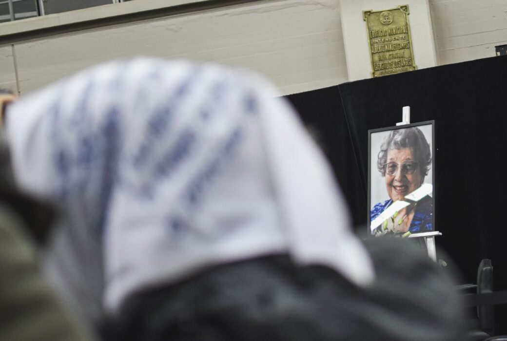 En una plaza como la que supo caminar, donde aprendió y enseñó a reclamar Justicia, un centenar de personas se acercaron para despedirla. “Gracias por la enseñanza de lucha inclaudicable”, decía en uno de los tantos mensajes exhibidos en una cuerda lateral a la puerta de entrada del municipio. Al ingresar al hall, se podían ver decenas de coronas de flores y una foto de ella colocada al lado del féretro. Sentadas a su lado, estaban dos madres de Plaza de Mayo.