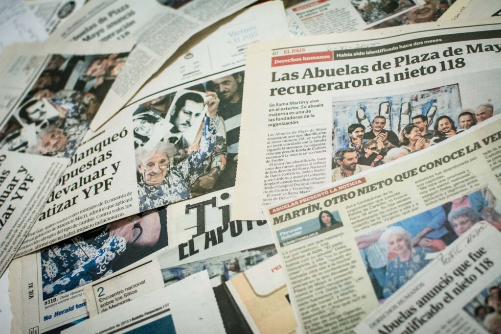 Y continúa: “Un jueves, una de las madres se sale de la ronda y dice ‘las que tengan hijas o nueras embarazadas vengan por acá’. Salí, y ahí empezó otra búsqueda: la de los nietos. Las abuelas fuimos paridas por las madres. Pero era diferente buscar a un nieto. Nos tuvimos que organizar para visitar hospitales de niños, juzgado de menores, casas cuna, orfanatos.”