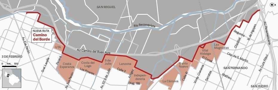 A pesar de la quita del terreno, Carlos admite: “La conectividad es primero y es primero hacer esto. Ahora, en vez de estar escondidos, los barrios van a tener un frente. Es una mejora para la gente. Levanta los precios de las casas pero también viene toda la especulación inmobiliaria”. La obra forma parte del Plan Integral de Saneamiento del Río Reconquista que impulsa el COMIREC, y es financiada a través de un crédito obtenido del Banco Interamericano de Desarrollo (BID). Se enmarca en la recuperación del río Reconquista, que recorre 18 partidos del Oeste y Norte del Conurbano. El Camino del Borde tiene una inversión de 400 millones de pesos. El proyecto incluye: el camino de hormigón armado, veredas, alumbrado público, bicisenda, puentes en cruces de arroyos, zanjones y vías ferroviarias.