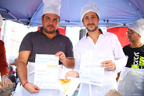 La propuesta alude a la célebre frase del exministro de Hacienda de Cambiemos, Alfonso Prat Gay, quien aseguró que las facturas de servicios iban a costar “dos pizzas más”. Organizado por el concejal de San Martín y director del Centro de Economía Política Hernán Letcher, y junto al diputado provincial Lauro Grande, repartieron dos porciones de pizza a todos los vecinos que llevaron una factura superior a 500 pesos, un equivalente promedio al costo de dos pizzas.