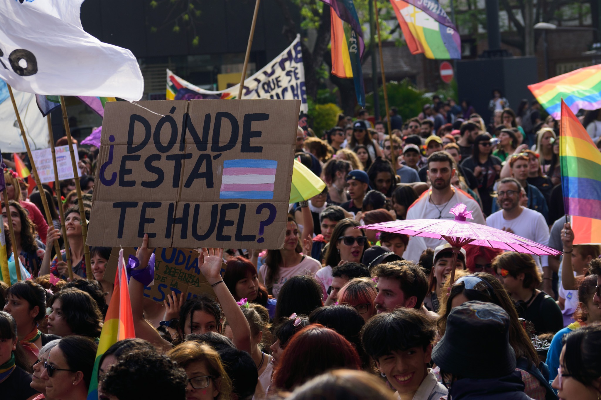 En el mástil del boulevard una bandera del orgullo había sido colgada antes de que empezará la movilización, cuando las personas empezaron a acercarse al lugar para prepararse. El sol y el buen clima acompañó desde temprano.