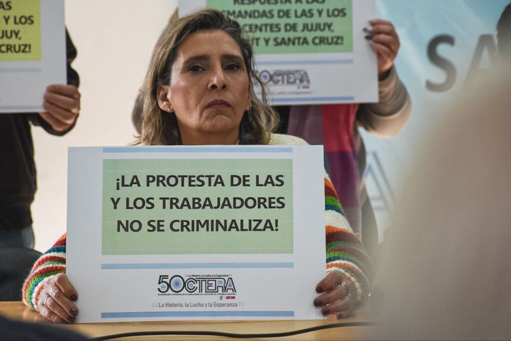 El conflicto en la provincia del norte argentino excede al reclamo salarial docente. Va más allá. La reforma constitucional atenta contra los pueblos originarios, protege negocios mineros multinacionales, prohíbe el derecho a la protesta en las calles y en las rutas enmudeciendo las voces perjudicadas. Por eso la lucha es conjunta. Por eso, a la conferencia sindical, también se sumaron representantes de movimientos sociales. Paula Clausi del MTE-UTEP (Movimiento de Trabajadores Excluidos- Unión de Trabajadores de la Economía Popular), aseguró: “esto es la unidad, todos somos trabajadores. Desde la organización estamos en alerta y estamos en la calle. Es fundamental que tengamos en claro que lo que se está viviendo en Jujuy es una muestra de lo que puede venir si viene un gobierno de derecha.”