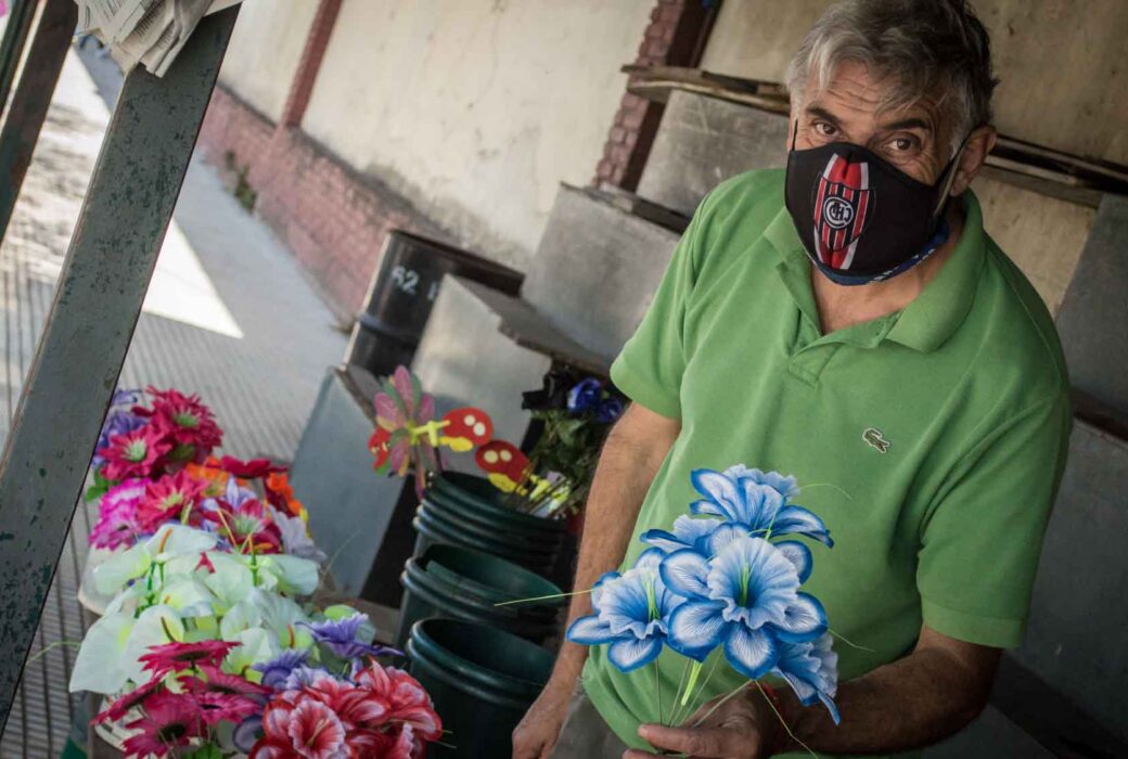 Sobre la misma calle, José Granece, tiene también su puesto de flores. Subsistió al cierre del cementerio con la jubilación de su pareja y la ayuda económica de su madre e hija. “Hace 35 años estoy ubicado acá. No tenes plata y no ves la hora de que abran el cementerio para juntar un peso”, explica José.