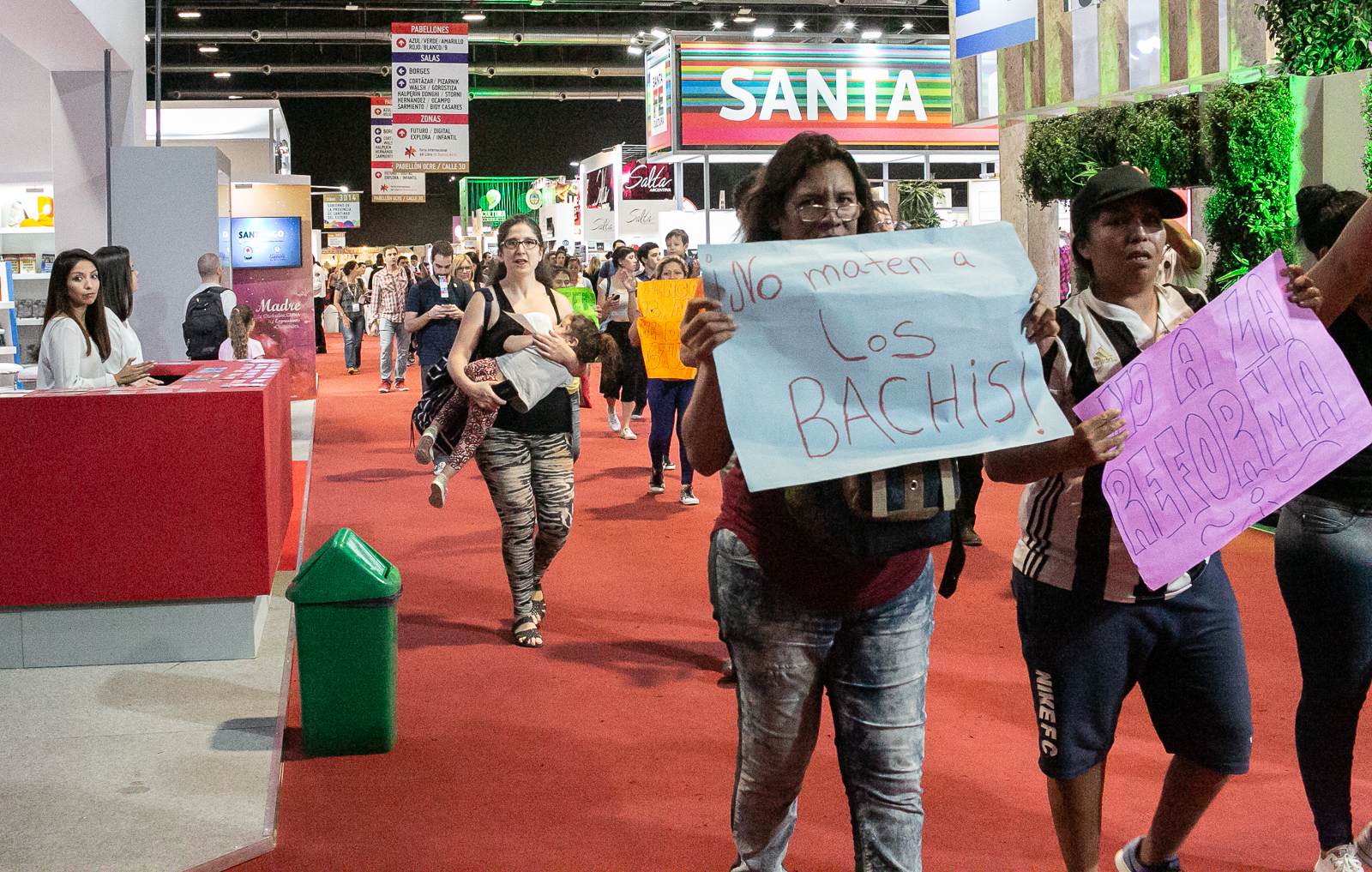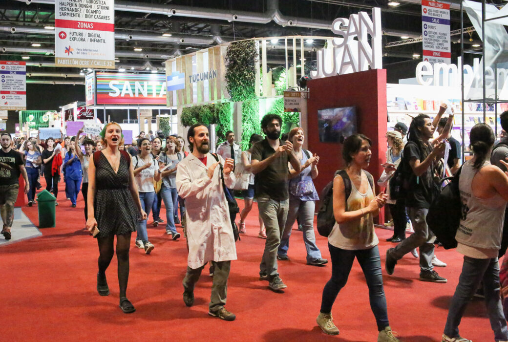 Al momento en que los ministros de Cultura de Nación y de Ciudad, Pablo Avelluto y Enrique Avogadro respectivamente, el presidente de la Fundación del Libro Martin Gremmelspacher, el director de Artes y Letras de la intendencia de Montevideo Juan Canessa y la escritora Claudia Piñeiro estaban realizando la inauguración de una nueva edición de la Feria del Libro, unos 150 menifestantes ingresaron al salón Jorge Luis Borges para expresar sus disconformidad frente a la iniciativa del gobierno porteño que encabeza Horacio Rodriguez Larreta de cerrar 29 profesorados en la ciudad para la creación de la UNICABA.