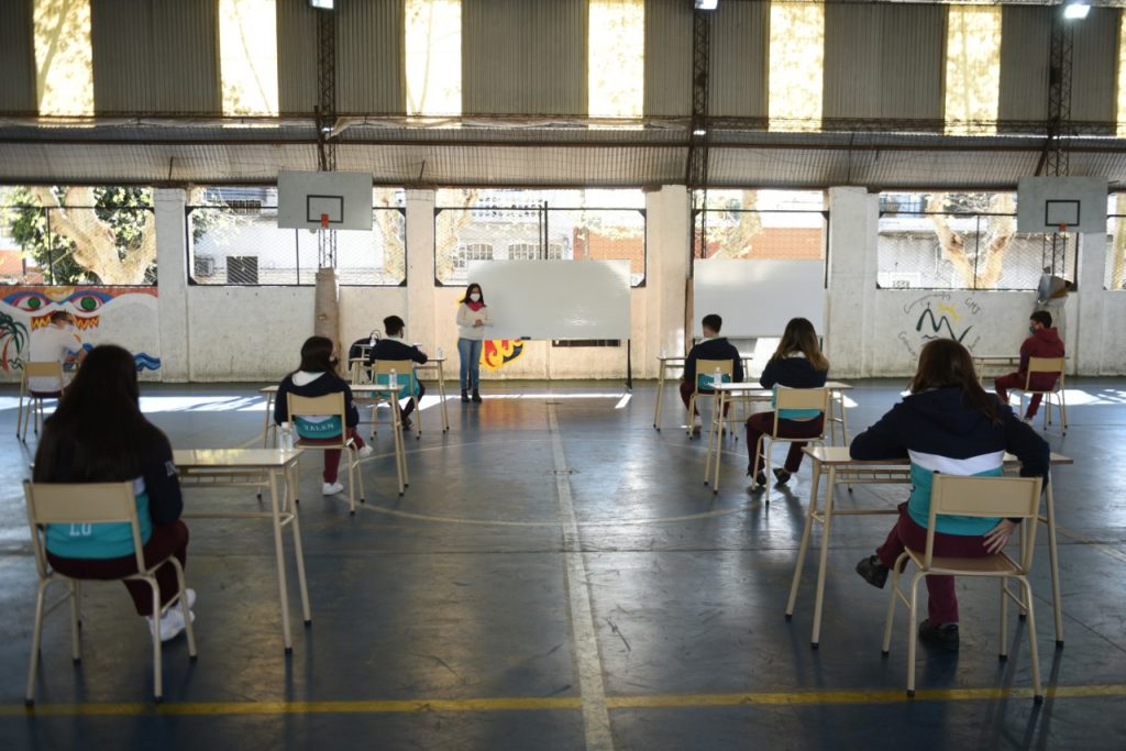 “Hicimos una prueba piloto de clases presenciales con estricto protocolo para los 6tos años del secundario”, publicó el pasado martes el intendente de Juntos por el Cambio desde su cuenta de Twitter, junto a una imagen con los estudiantes.