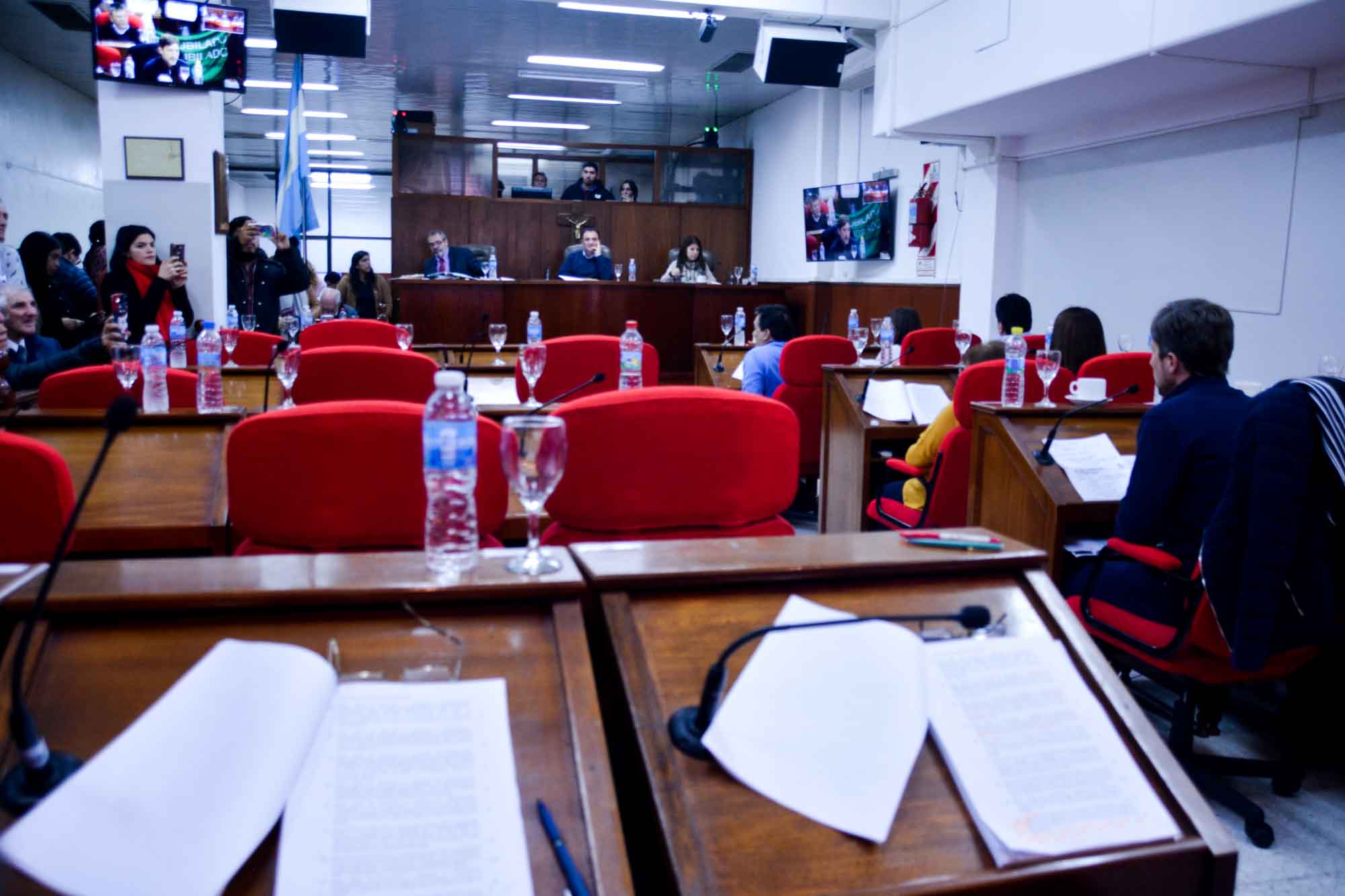 Los presentes en el publico cargaban banderas con leyendas que expresaban “Vidal Miente”, llevados por trabajadores y trabajadoras bancarios que rechazan la ley sancionada en la legislatura bonaerense que eleva la edad jubilatoria desde los 57 a los 65 años de edad. También, estuvieron presenciando la sesión miembros de la comunidad trans que esperaban con ansias la aprobación del Cupo Laboral para su sector en la municipalidad, que proviene de una ley provincial sancionada en 2015 y que no tiene su reglamentación por parte del gobierno de Maria Eugenia Vidal, pero que los municipios han ido adherido en estos últimos años.