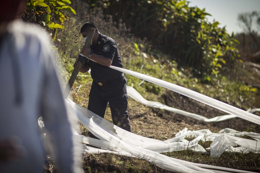 Allí, dos hileras de policías, con escudos y escopetas, se asomaban por detrás de la montaña de basura. Justo en el mismo lugar donde días antes los vecinos encontraron el cuerpo sin vida de María Angelica Andrada.