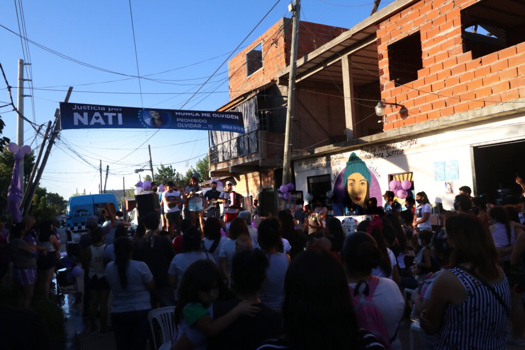 El encuentro, que comenzó cerca de las 18, tuvo lugar en la intersección de las calles Cisneros y Zorzal en Villa Hidalgo. Allí, el pasado 8 de marzo, Día internacional de la Mujer, se pintó un mural con la imagen de la joven para homenajearla. Además de familiares, amigos y vecinos, se hicieron presentes agrupaciones sociales y familiares de víctimas que se unieron al pedido de Justicia.