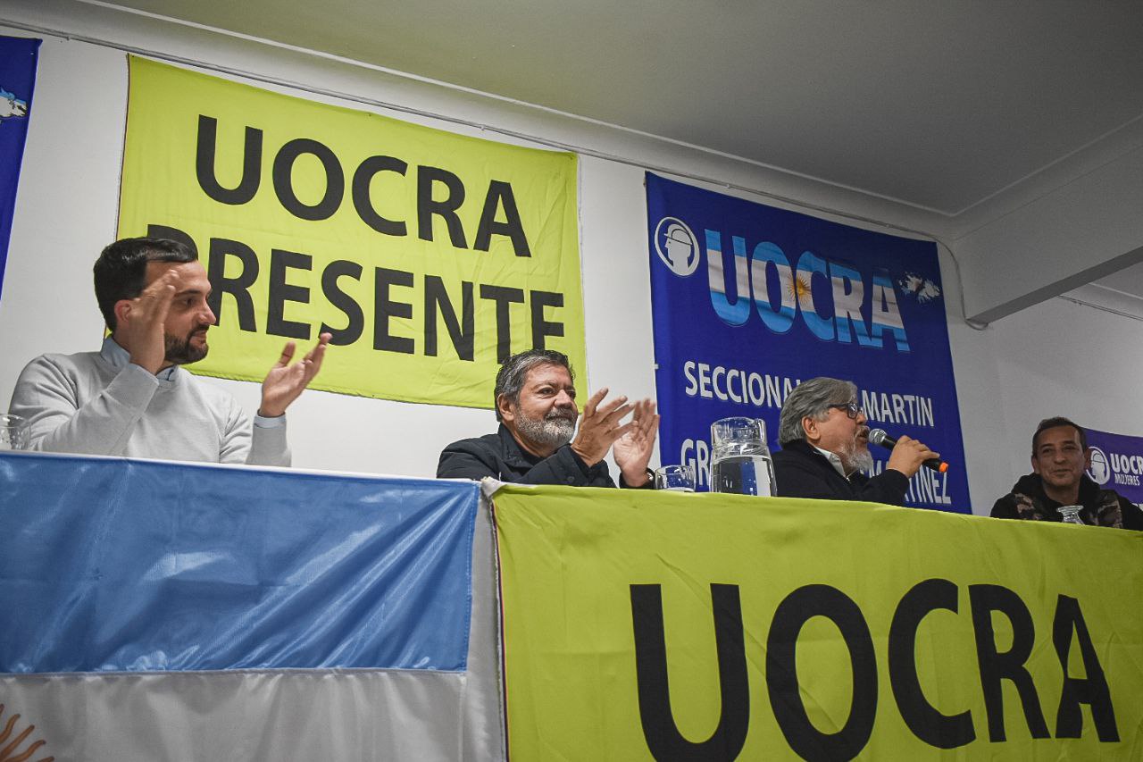 Leo Grosso acumula contextura política en su camino hacia las PASO. Gerardo Martínez, Secretario General de la UOCRA nacional, ratificó su apoyo al precandidato a Intendente por Unión por la Patria en el municipio de San Martín. Así lo hizo en la sede distrital, junto a su par local, Luis Videla, y Fernando “Chino” Navarro, Secretario de Relaciones Parlamentarias, Institucionales y con la Sociedad Civil de la Jefatura de Gabinete de la Nación.