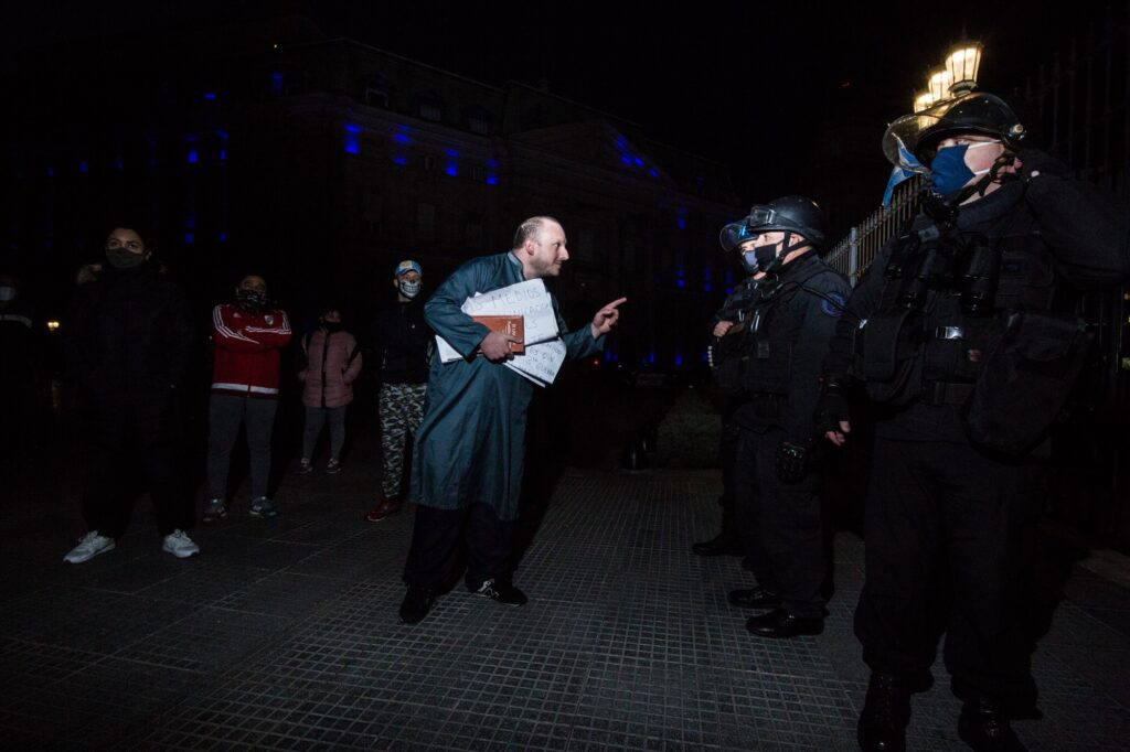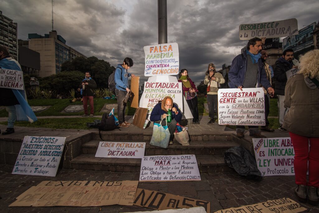 Preocupados por sus libertades, por la república, por la expropiación, por no ser Venezuela. Falsos libertarios, gente del campo, nacionalistas de Biondini, antivacunas- reunidos por la conspiración, la paranoia y la hipocresía, se concentraron reiteradamente durante el 2020 para afirmar que las medidas del gobierno correspondían a un “Plan Genocida Esclavista” contra “su” humanidad, y por eso llamaban a la desobediencia civil desde sus autos polarizados, estaban “en contra de todo”- eso me respondían cuando les preguntaba por qué estaban ahí. “Por todo”.