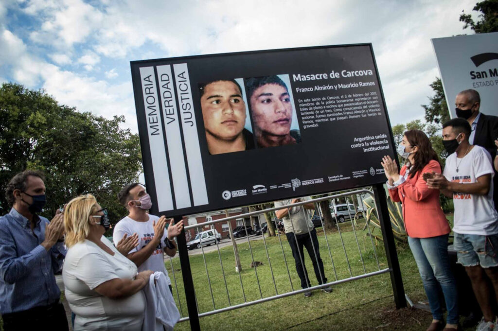Diez años atrás, el 3 de febrero de 2011, la policía bonaerense fusiló a dos jóvenes e hirió gravemente a un tercero tras el descarrilamiento de un tren de carga en el barrio de Carcova, en José León Suárez. Desde allí las organizaciones sociales y políticas del distrito vienen construyendo memoria y reclamando por Justicia. Este año, a causa de la pandemia del Covid-19, se realizó un acto reducido en la Plaza de los Trabajadores donde se inauguró un señalamiento en homenaje a Mauricio Ramos y Franco Almirón.