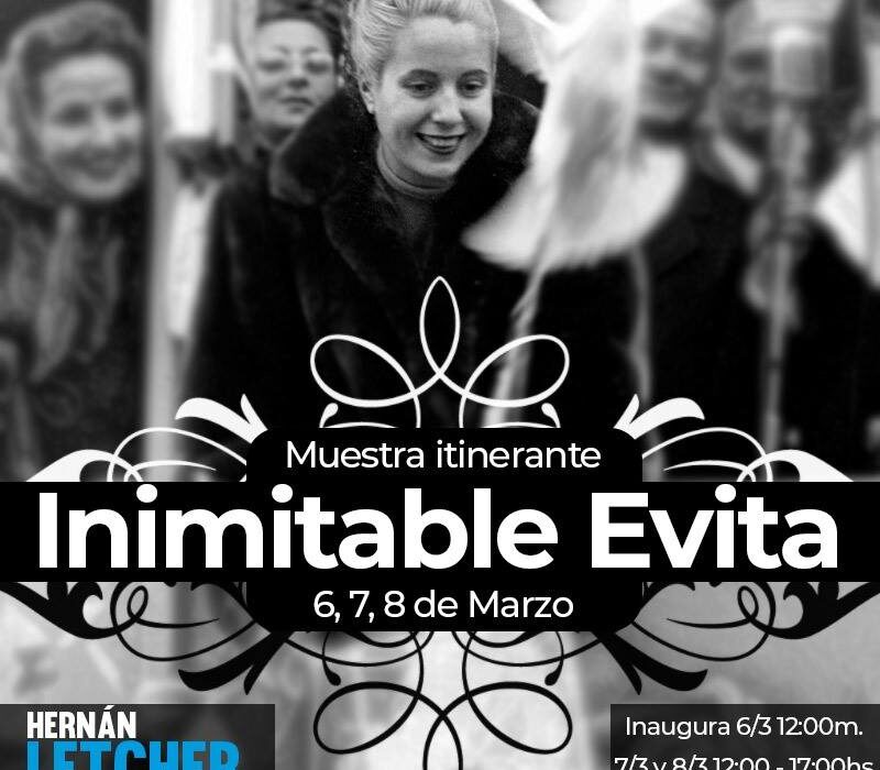 En el Honorable Concejo Deliberante a partir de este miércoles se podrá visitar una muestra fotográfica sobre Eva Peron, a 100 años de su nacimiento. La compilación del material es realizada por Mirta Praino y la actividad es organizada por la secretaria de la Mujer del PJ local a cargo de Analia Mairano y el bloque de Unidad Ciudadana que encabeza Hernán Letcher.