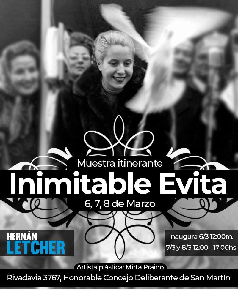 En el HCD se podrá visitar a partir de este miércoles y hasta el viernes inclusive una muestra fotográfica sobre Eva Peron, en el año centenario de su nacimiento. Los interesados e interesadas se podrán acercar en el horario de 12 a 17 a Rivadavia 3767 donde esta ubicado el recinto legislativo de San Martín.