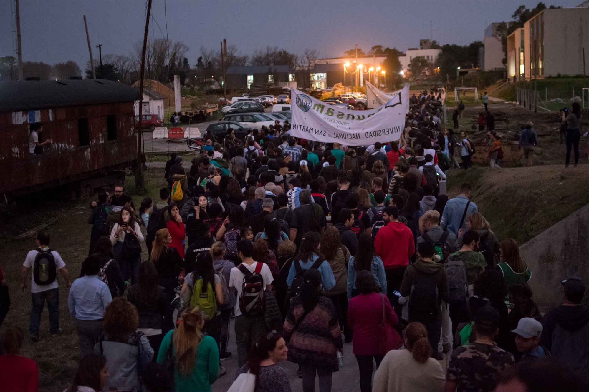 La actividad se realizó este miércoles a las 18 horas, y participó una multitud de estudiantes, docentes, directivos de la universidad, organizaciones políticas, el intendente Gabriel Katopodis, el diputado nacional Leonardo Grosso, el referente de movimientos populares Juan Grabois y Diego Perrella, entre otros. Todos criticaron la decisión que tomó AABE sobre el predio de la UNSAM.