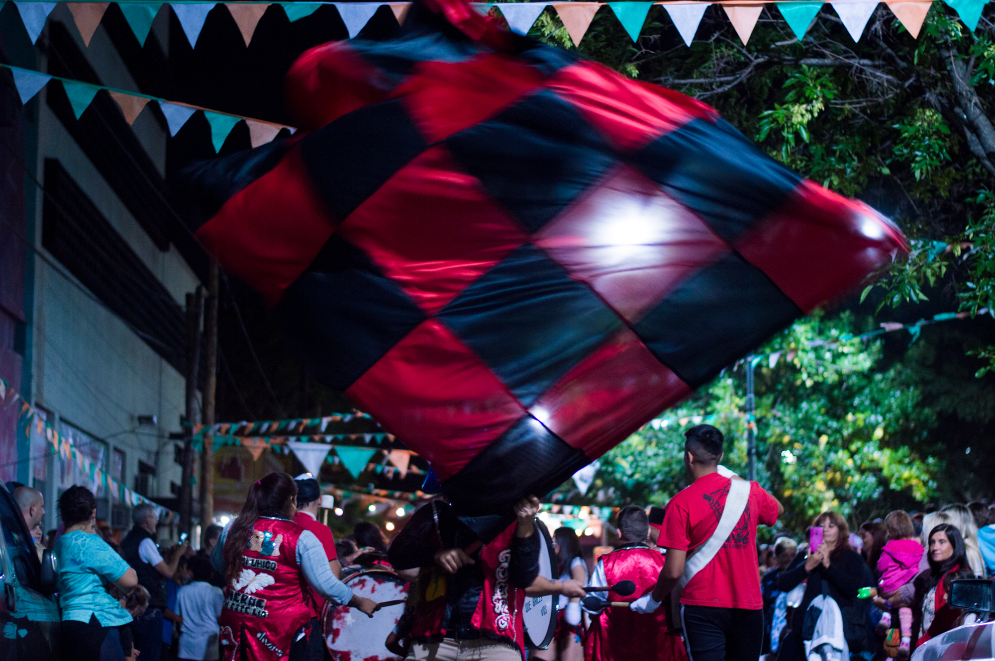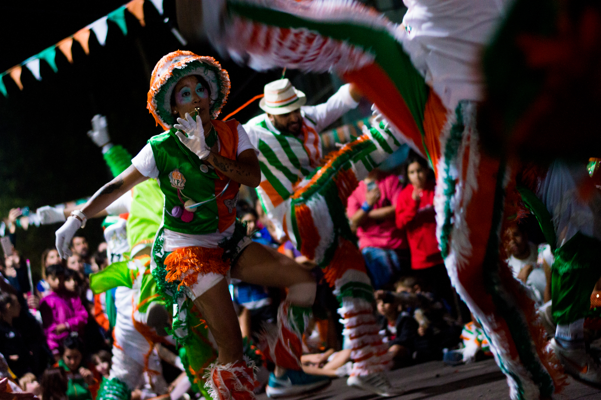 Los murgueros desplegaron toda su alegría desde las 9 de la noche, pero los preparativos comenzaron desde el mediodía en la plaza. Los banderines de colores son los primeros en ser colgados y poco a poco la plaza se fue llenando de colores con la murga de la casa: blanco, naranja y verde. Se trata de “Los Paranoicos”, quienes llegan desde temprano para armar el sonido, instalar los puestos y preparar los bombos.