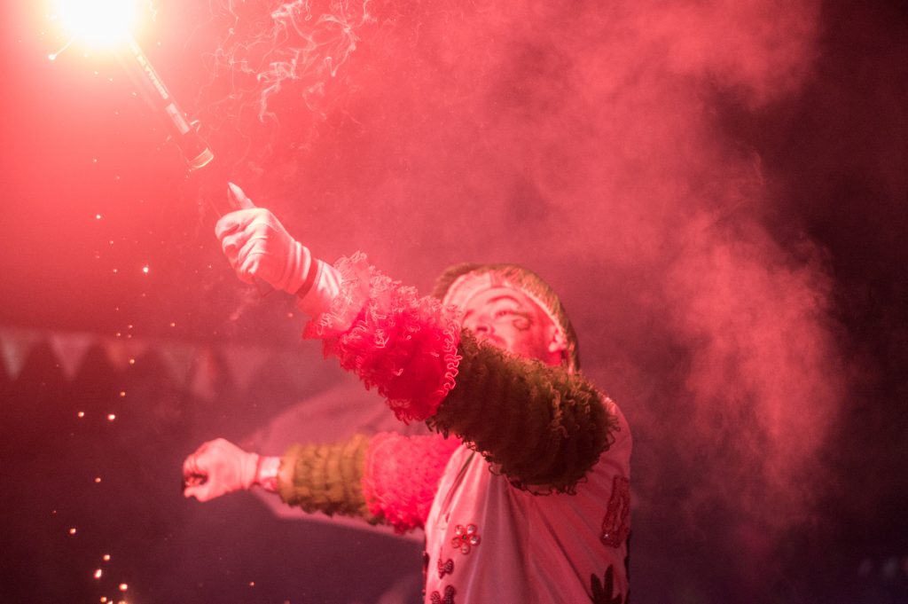 Cerca de las 7 de la tarde la plaza se va llenando de familias que están a la espera del inicio del show. Los más chicos juegan con la espuma y la música comienza a sonar cada vez más fuerte. Afuera la gente se va preparando en la plaza para ver a las murgas y adentro, en el fondo de un local los integrantes de las murgas comienzan a cambiarse y maquillarse. “Para nosotros esto significa todo, es contención en primer lugar pero también familia y alegría” comentan “Las Chichis” el grupo de mujeres más grandes de Los Paranoicos y, por último agregan: “no entendemos cómo la gente puede vivir sin murga, la murga es alegría y felicidad y es lo que nos gusta transmitir”.