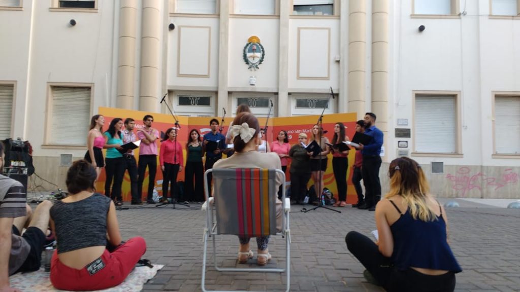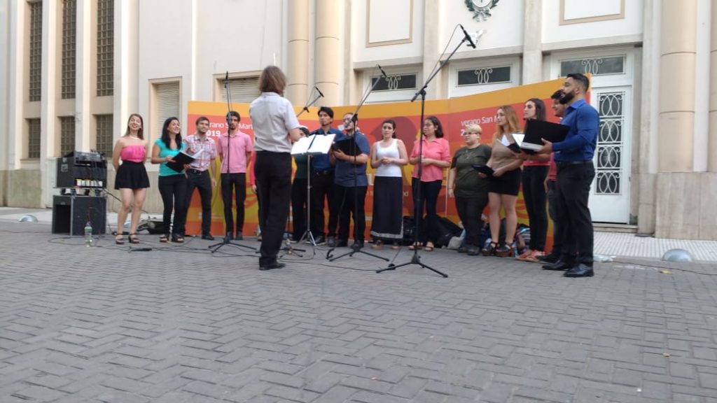 El Coro Municipal de San Martín se presentó el sábado pasado en la plaza Central del distrito, dentro del marco de Vivi Cultura que auspicia la Municipalidad. También acompañó la jornada la Feria artesanal Paseo José Hernández y los artistas callejeros que rondaban la plaza.