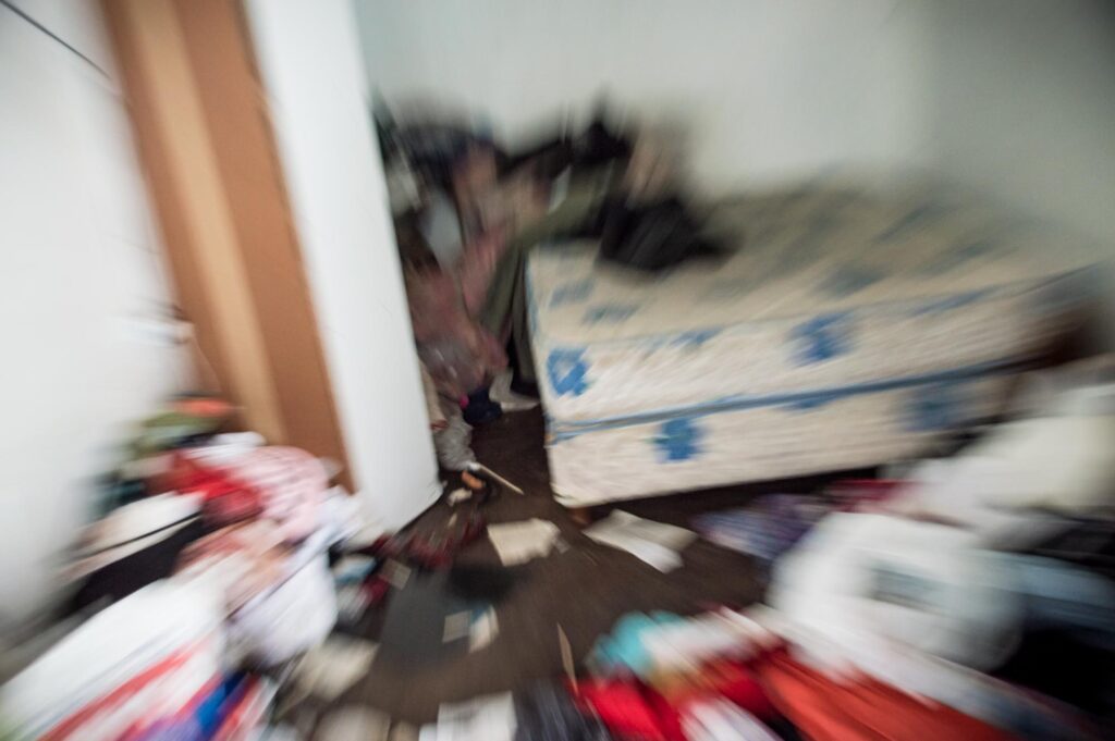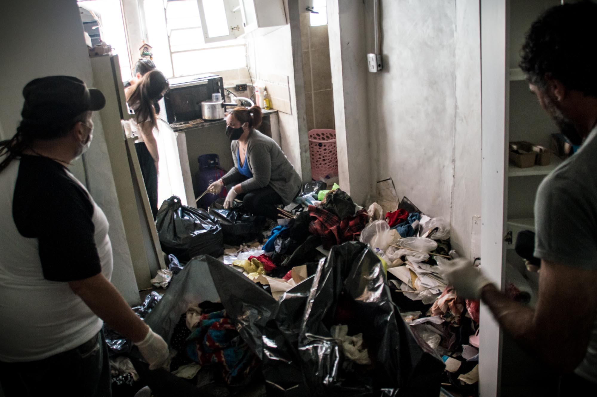 Sus pies se hunden entre las prendas que cubren el suelo. El olor es asfixiante. “Así estaba cuando entramos con la policía la primera vez”, cuenta Sergio Paroldi, quien le alquilaba el monoambiente a Sabag Montiel. “Vivía así”, dice. Más atrás, Milagros, testigo del primer allanamiento, frunce la frente: acaba de pasar cerca de la pequeña cocina.
