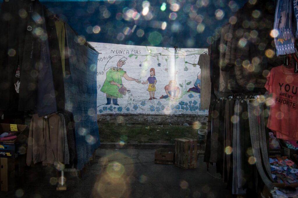 No es un día más para el barrio. Como todos los jueves, hay feria. Los comerciantes se agolpan en la plaza y estiran sus mantas sobre el suelo. Luis Alberto Arias es uno de los organizadores de la feria. Hace trece años que trabaja en el lugar. A Sabag Montiel lo veía de lejos, sosteniendo el palo con los copitos, junto a otras personas. Sus anillos estrafalarios, cuenta Arias, era lo que más le llamaba la atención. “Nunca se acercó a preguntar si podía venir a vender”, sigue el organizador. “Dejamos entrar a todos, pero por una cuestión de respeto y confianza, hay que preguntar primero”.