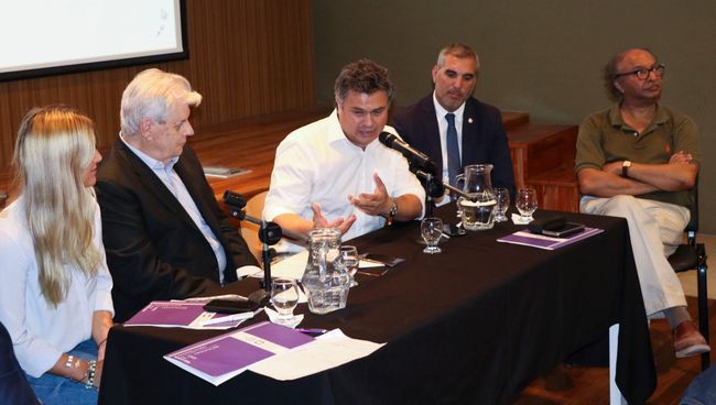 El candidato por la intendencia del PRO en San Martín aprovechó el lanzamiento de los encuentros sobre desarrollo urbano en la UNSAM, junto a técnicos del CEAMSE y el COMIREC, para hacer su reaparición en el escenario político local. Se mostró junto a sus principales aliados, la diputada nacional Samanta Acerenza, el legislador bonaerense de la UCR Walter Carusso y los concejales Ramiro Alonso López y Marcela Mancini.