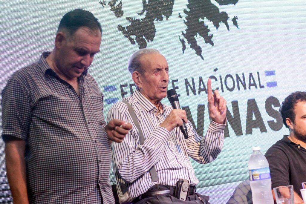 Pablo Puebla dirigente nacional de la OLP y del recién lanzado Frente Nacional Malvinas cerro el acto diciendo “Nos comprometemos a construir política para refundar el país, para la liberación de nuestra patria. Y crearemos el Frente Nacional Malvinas en cada una de las provincias”.
