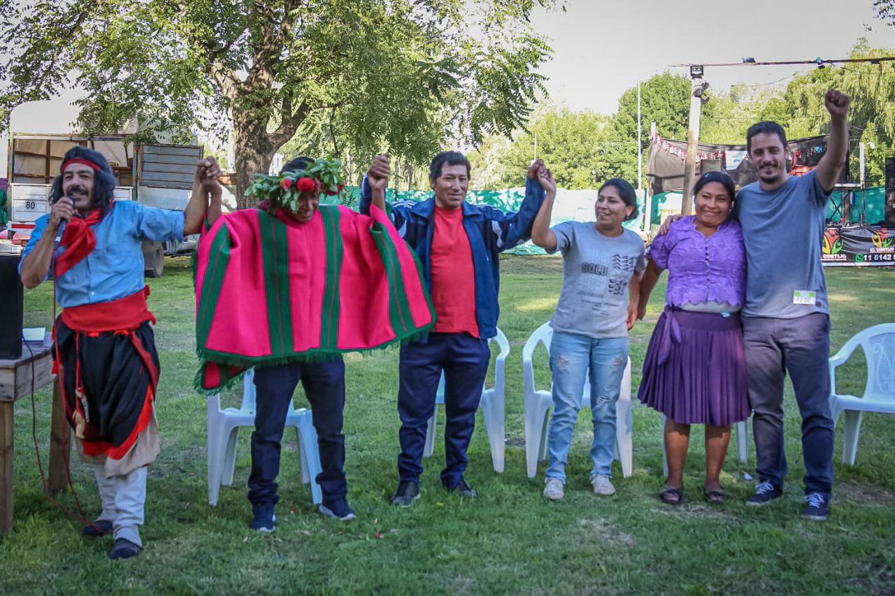 Cayó la tarde y la sombra de los eucaliptos se confunde con la noche, el festival continúa a ritmo de chacarera. La tierra se levanta con el zapateo y retorna a su lugar con el incansable movimiento de los pañuelos. “No importa de qué organización sea, porque son muchas las que se unen dentro de la Mesa de la Tierra, salimos todos juntos”, afirman. “Éste es el primero de muchos festivales”, dice Aliaga, y así concluye, porque la música irrumpe y el predio se colma de bailarines.