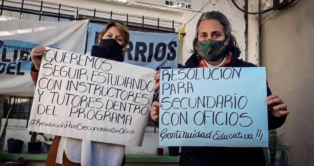 Según Melina, recientemente las autoridades les comunicaron que el “Plan Fines” va a iniciar con clases virtuales, y absorvería lo que hoy es el “Secundario con oficios”: esto implica eliminar las figuras de instructores y tutores, por “falta de recursos”.