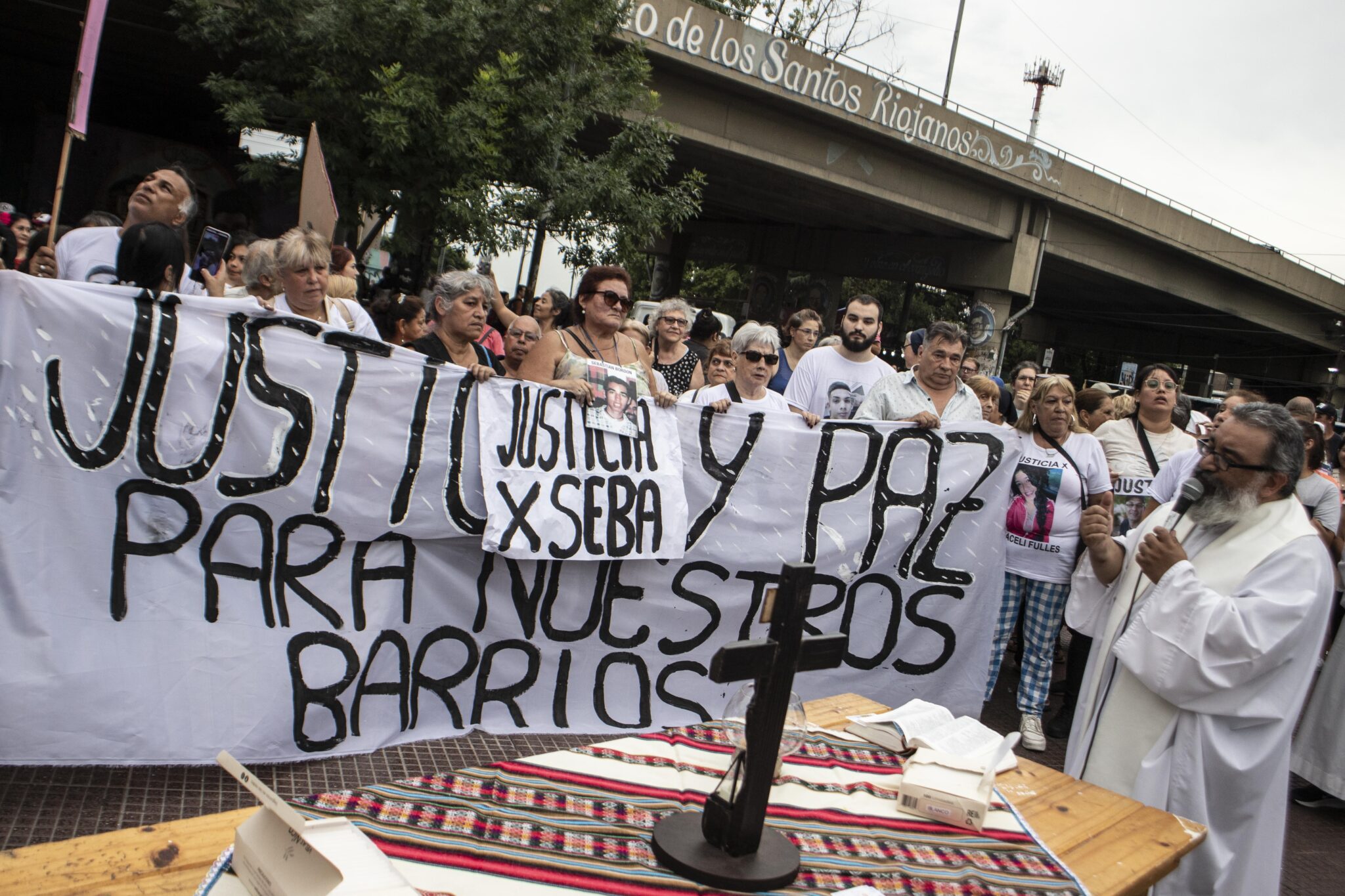 Al frente de la peregrinación que bordeó la entrada de los principales barrios populares de san martín, caminaron sosteniendo una bandera que decía “paz y justicia en nuestros barrios” los familiares de Sebastián Carrillo, Sebastián Bordón, Chiara Ramirez, Araceli Fulles, Ivone, Rodrigo Correa, Andrea Jara y Marcelino Luque.