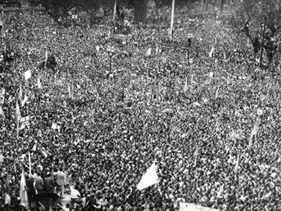Una marcha incansable de obreros inunda Plaza de Mayo. Llegan como pueden, desde las fábricas, desde los barrios del conurbano bonaerense.…