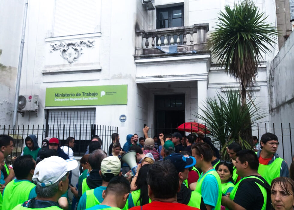 La llovizna matinal no impidió que se realice con total normalidad el reclamo por la recuperación de los puestos de trabajo y salarios adeudados. Según informaron, se les adeuda el retroactivo del aumento de abril, mayo y junio, y los sueldos del mes de diciembre, ademas de las vacaciones del período 2018, el bono y el aguinaldo completo.