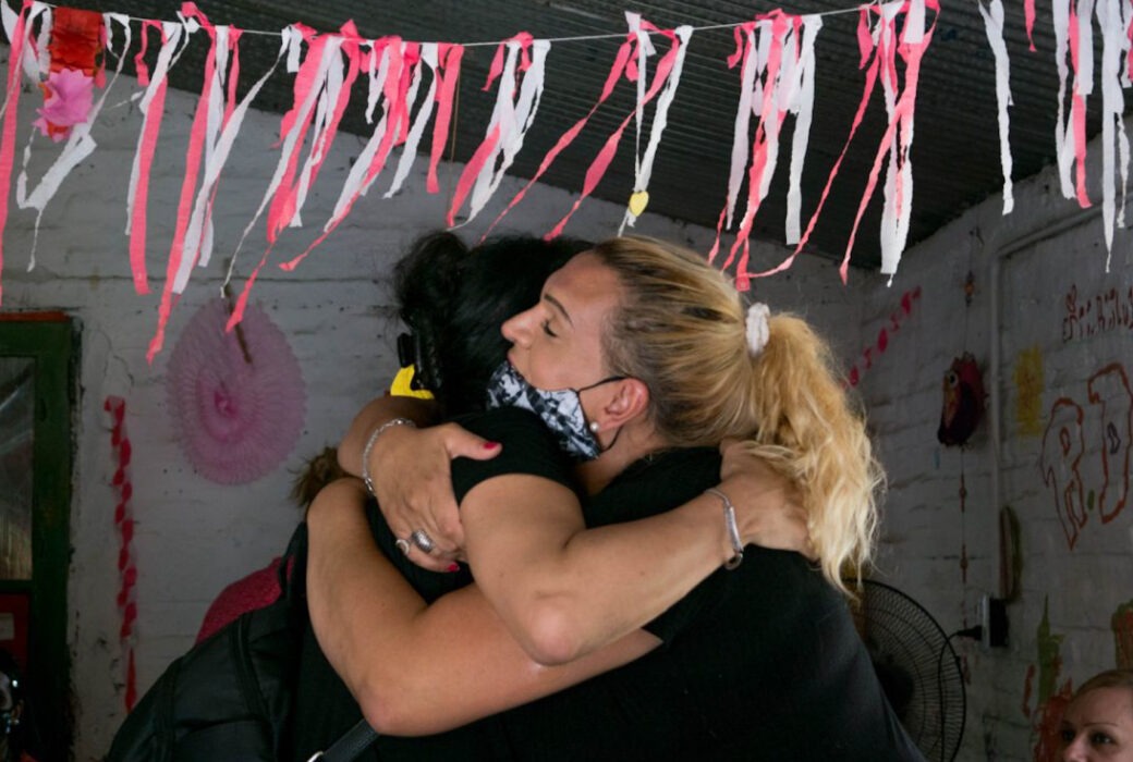 La directora provincial de Diversidad sexual, Daniela Castro, y el Director de Programas Especiales para la Diversidad Sexual, Nicolas Abratte, visitaron el comedor gestionado por la red de cuidados travestis y trans “El teje de San Martín”.