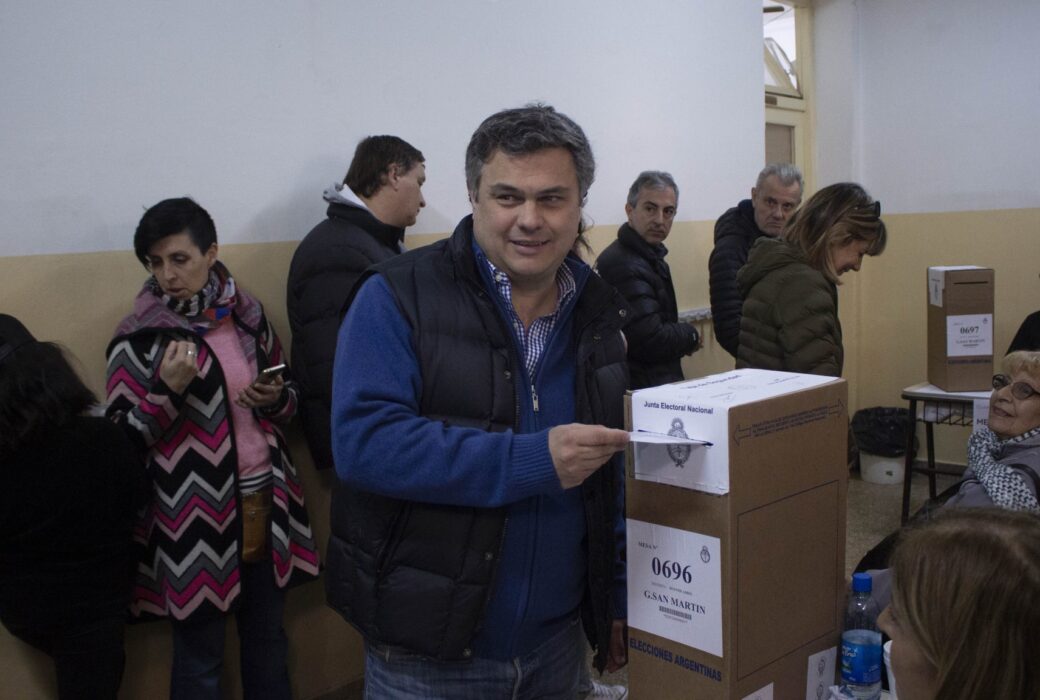 El ministro de Desarrollo Social de la provincia de Buenos Aires, Santiago López Medrano, emitió su voto esta mañana en la escuela N°34 ubicada en la localidad de Malavert. El precandidato llevó en sus manos facturas para los fiscales que estaban llevando adelante su trabajo en la mesa Nº 696.